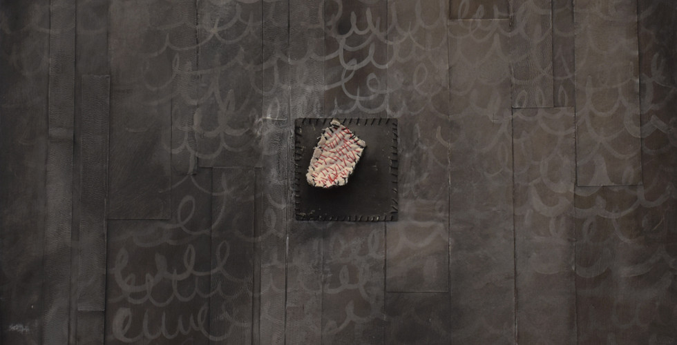 Mediante estas piezas que combinan técnicas textiles y pictóricas, Rodolfo Salmerón configura una atmósfera de refugio siempre cambiante. Lo advertimos en la irregularidad de sus pliegues y texturas, que adquieren familiaridad y calidez gracias a la utilización de tonos sienas y ocres; también encontramos indicios de estabilidad en las áreas geométricas que marcan el ritmo de nuestra mirada. No obstante, hay vestigios de fragmentación, desgarraduras elípticas que emergen sobre la tela y que permanecen abiertas, apenas contenidas por la tenacidad de un hilo blanco que sutura sus contornos. La presencia de paños y hebras superpuestos entre sí obedece a la necesidad de remendar las vulnerabilidades que anidan en nuestra subjetividad; incontables parches habitan la composición, adheridos por costuras siempre inestables, con direcciones inciertas, mas no por ello desprovistas de fuerza y sinceridad, propias de una sensibilidad que intenta construir para sí, y por extensión para nosotros, una morada.